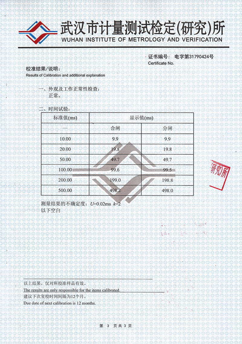 時 間:12個斷口的固有分、合閘時間,同相同期、相間同期。